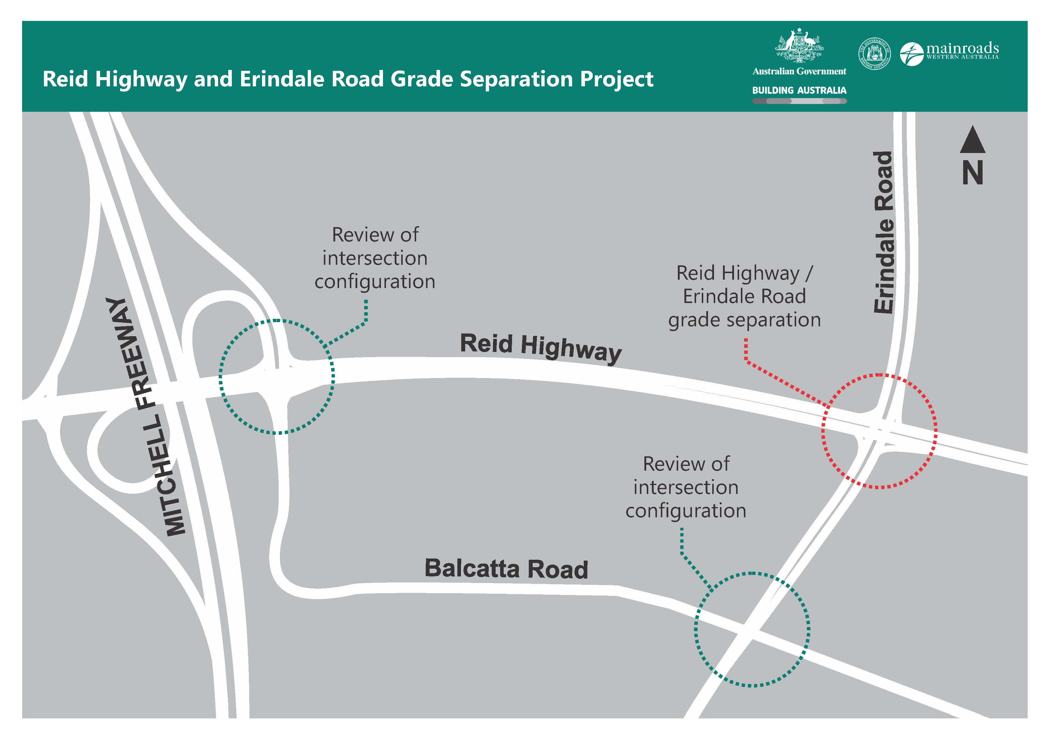 The intersection of Reid Highway and Erindale Road is the last remaining at-grade signalised intersection between Mitchell Freeway and Tonkin Highway. It plays a vital role in the broader road network, facilitating access to residential suburbs such as Hamersley and Warwick, as well as the Balcatta light industrial area.